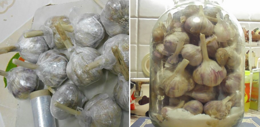 Щоб часник не відганяв нове коріння, обпаліть його за допомогою запальнички. Від цвілі, опустіть голівки часнику в розчин з півлітра рослинної олії, яку кип’ятіть на вогні 2 години, після капніть 10 крапель аптечного йоду. Після занурення підсушіть часник.